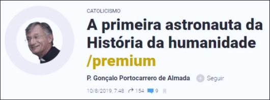 Será então que, a primeira criatura humana que viajou no espaço, foi mesmo o astronauta russo Yuri Gagarin? Não, porque, segundo a doutrina católica, também a Mãe de Jesus de Nazaré, Maria, subiu ao Céu em corpo e alma.»