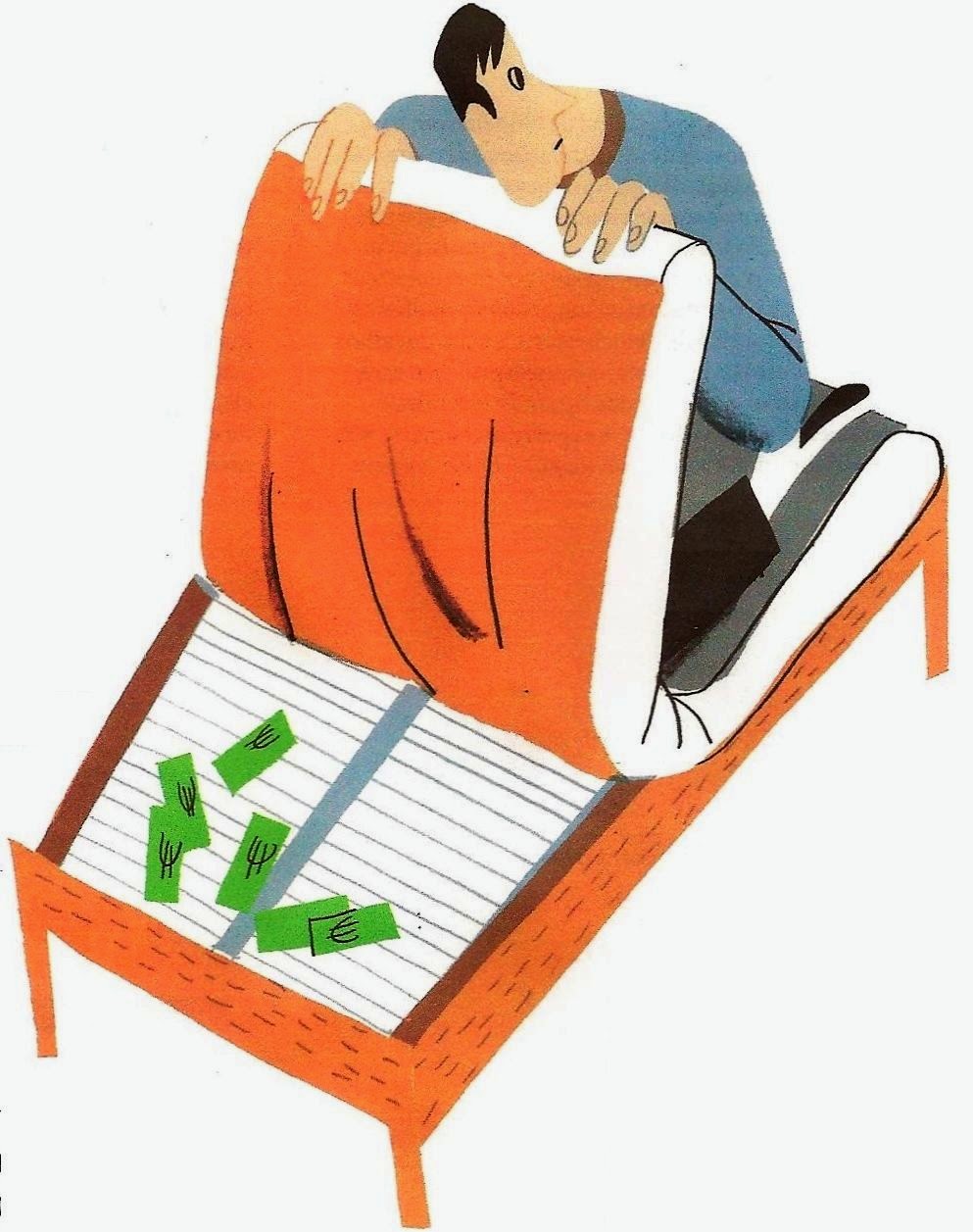 O Sr. Silva vira a página do calendário e enfia as mangas de alpaca pretas, com elástico em cima e nos punhos, para poupar o casaco cinzento que comprou no Natal.
