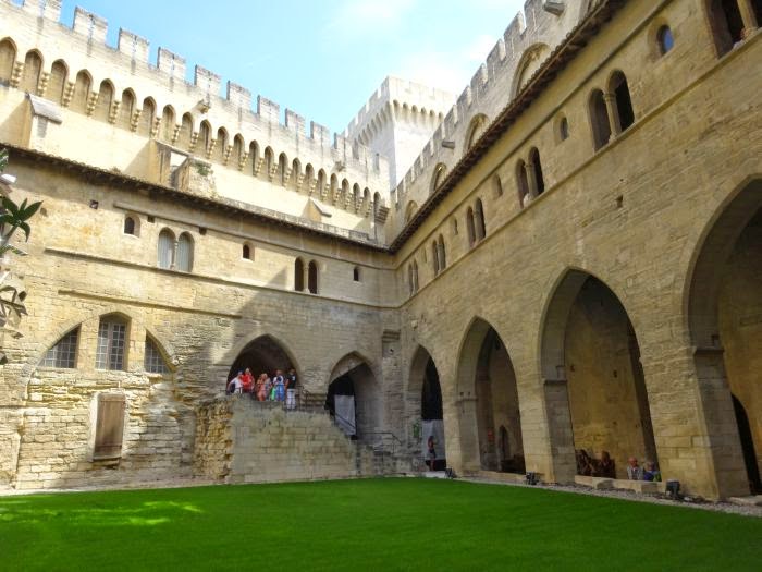 … d’Avignon, evidentemente. Mas se o nome da terra lembra uma canção infantil e um célebre festival de taeatro, é o Palácio dos Papas que concentra todas as atenções. Obra-prima da arquitectura gótica, misto de fortaleza, abadia e castelo, foi residência de papas entre 1309 e 1403, primeiro sem concorrência até 1378 e depois concretizando o Grande Cisma.