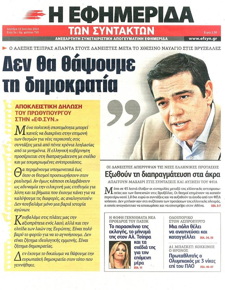 «É na Grécia que se esconde o verdadeiro adversário do status quo: é preciso castigar uma figura anti-sistema como Tsipras e demonstrar que a esquerda radical não pode dirigir um país europeu.»
