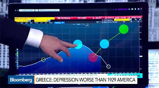 A recessão na Grécia tem sido tema dos noticiários económicos internacionais. Este vídeo do canal da agência Bloomberg compara-a à Grande Depressão nos Estados Unidos e diz que a realidade atual da economia da Grécia ainda é pior que a norte-americana no início dos anos 30.