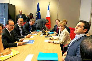 «A tensão subiu na cimeira do Conselho Europeu, quando o seu presidente, Donald Tusk, voltou a dizer que “o jogo acabou”, a propósito das negociações com a Grécia. Alexis Tsipras respondeu dizendo que “a Grécia tem 1.5 milhões de desempregados, 3 milhões de pobres e milhares de famílias sem rendimentos que vivem da ajuda dos avós. Isto não é um jogo.”