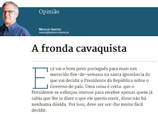 É neste tempo sem respostas que os portugueses voltaram a discutir política com acutilância. Como há muito não se via. O tempo da paz podre parece ter desabado e as posições extremaram-se porque o centro (debilitado pela crise e pela austeridade selvagem) implodiu. Sem classe média remediada que sirva de balança, os pólos extremam-se. E isso aconteceu à direita e à esquerda, como se viu pelos discursos destes últimos dias. Cavaco Silva ajudou a isso, não sendo o elemento moderador que seria essencial neste período. Vivemos tempos novos. Os melhores ou os piores, consoante o ponto de vista. Mas, indiscutivelmente, diferentes. Que abrem a porta para outros tempos.»