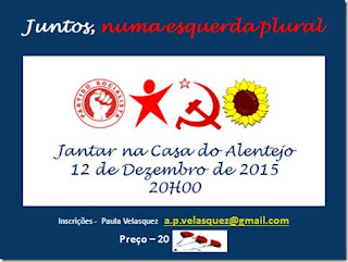 Vamos, por tudo isto, estar juntos num jantar, no próximo dia 12 de Dezembro, a partir das 20H00, na Casa do Alentejo.»