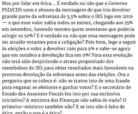 «Governar à esquerda vai querer dizer apoiar e votar em conjunto as medidas de interesse comum mas, simultaneamente, ter BE, PCP e os Verdes a reivindicar e criticar o PS por ainda não se ter ido longe o suficiente e isso é a nova normalidade governativa.»