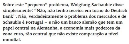 Aliás, a dureza e hostilidade que existem contra o governo de Costa, contrastam com a vontade dos principais dirigentes europeus darem a Cameron medidas que significam recuos importantes (e que também estão nos Tratados) em matéria de liberdade de movimentos e direitos sociais dos emigrantes, para que este volte com um frágil papel para convencer os eleitores ingleses que afinal, com uma longa lista de opting out, ainda podem continuar na Europa. Ou seja, em matéria de direitos sociais, a mesma Europa que não cede a Portugal uma décima no défice sem vilipendiar um governo eleito, está disposta a abdicar perante a pressão inglesa. Na economia do “ajustamento”, não há um milímetro de cedência às “regras”, nos direitos sociais, tudo é negociável. Por tudo isto, a “Europa” actual, Schäuble, Dijsselbloem, Moscovici, Dombrovskis, mais as suas cortes de funcionários zelosos, a última coisa que desejam é que possa haver qualquer mitigado sucesso de um governo que está a cometer esse crime de lesa-economia que é “reverter” salários e pensões, taxar fundos e bancos e não ao contrário. (…)