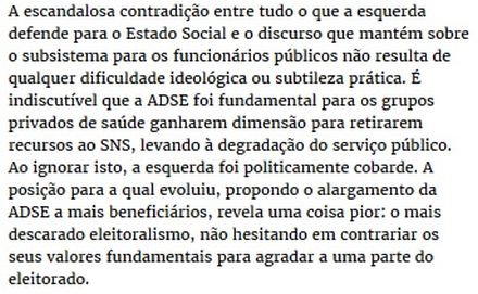 Segundo, porque o PS, permanecendo no terreno da ortodoxia europeia, não se consegue libertar para fazer a política que pretende. Com algumas pequenas concessões e menos rigorismo europeu, podia, mas ninguém lhe fez essas concessões. (…)