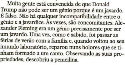 «Andy Warhol, que não se contentou com 15 minutos de fama, disse um dia que: "Comprar é muito mais americano do que pensar e eu sou absolutamente americano." Foi talvez com estas palavras em mente que uma série de incógnitos deputados portugueses decidiram, durante um ano, fazer reuniões que não existiam para criar uma lei que desejavam que fosse invisível. Ou seja, em vez de pensarem, decidiram optar pelo lado materialista da função partidária. Ao transformarem o financiamento partidário numa loja de conveniência, os deputados criaram o seu próprio materialismo dialéctico: em vez de serem transparentes com a sociedade, criaram um restaurante Michelin privado. A metodologia secreta foi tanta que ninguém foi responsável pelo nascimento do Frankenstein e, agora, com ele a andar por aí aos tombos, à espera do congresso do PSD, ninguém quer ficar com ele em casa. É assim a política indígena, na sua insignificância face ao que são os desafios que se colocam. Isto porque apesar de a política ser a arte do possível, tudo pode mudar quando alguém interfere a pontapé e se torna a arte do impossível.