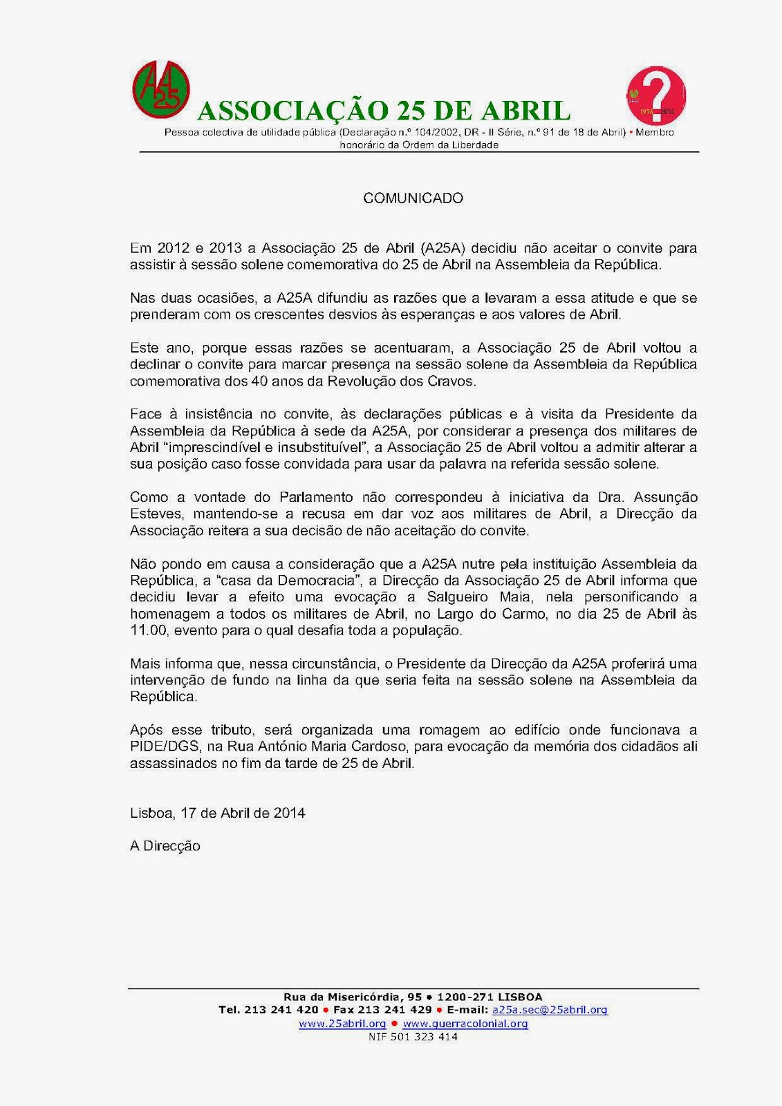 Hoje em dia, lutar por um mundo melhor não envolve os riscos que existiam antes do 25 de Abril, mas é mais difícil do que há 20 ou 30 anos. Se nada fizermos hoje, daqui a 10 anos será pior e daqui a 20 pior ainda será. Afinal, que mundo queremos nós deixar aos nossos filhos?